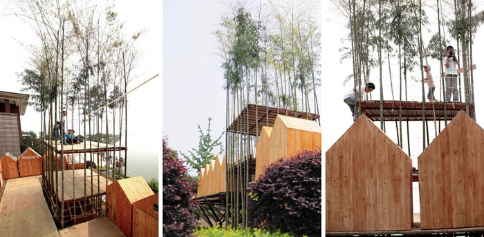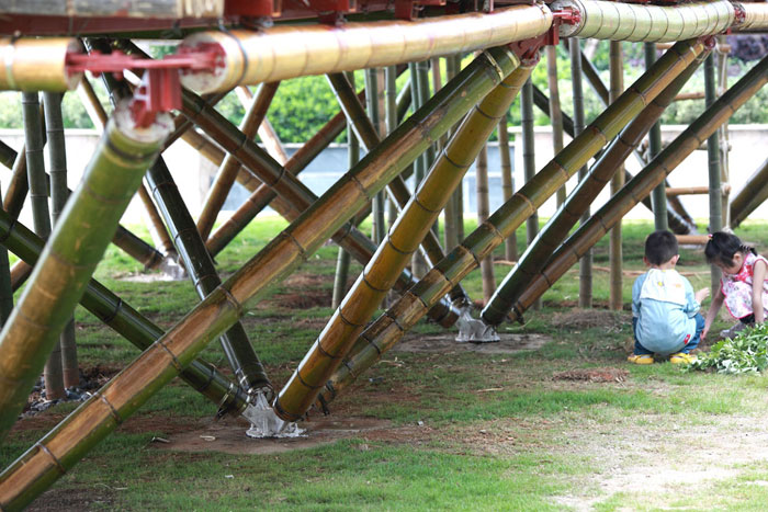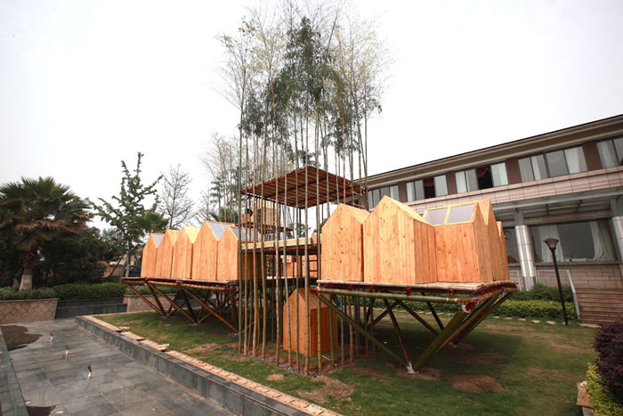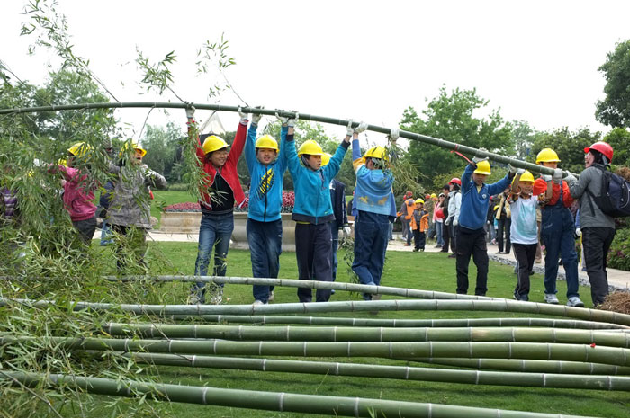 共同在中国武汉设计并制作的竹子天空之城,共耗时3个月。