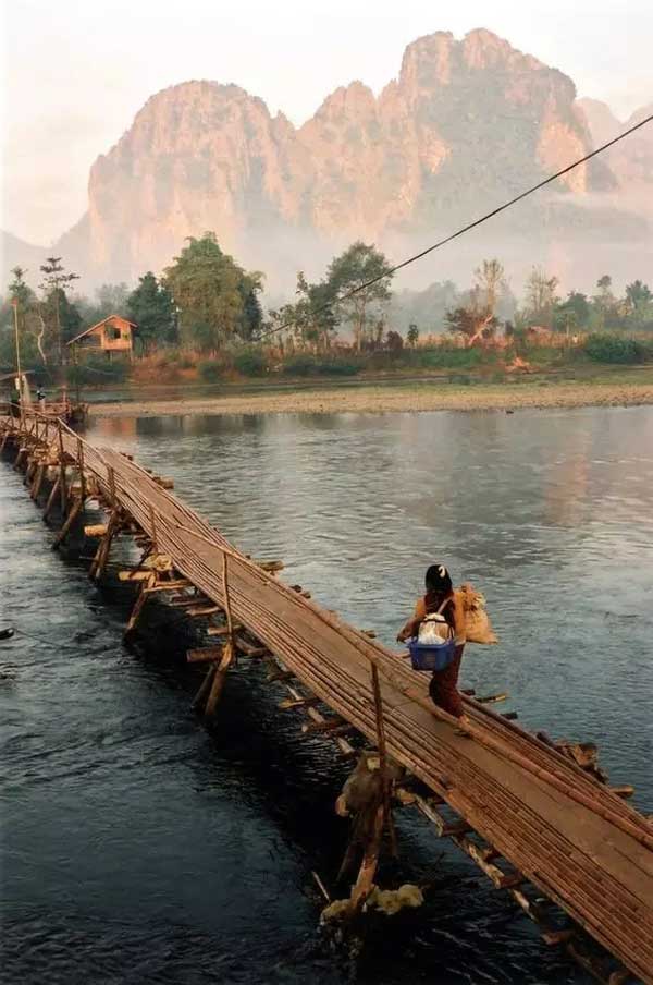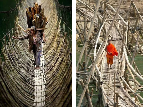 在南方,竹桥横跨于小溪上,颇有些“小桥流水人家”的意味。