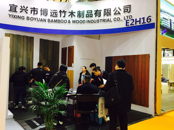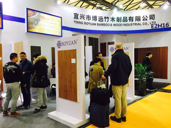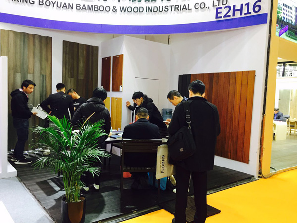 图为本届上海地材展上尚诺竹地板展位实景图(展位号:E2H16)