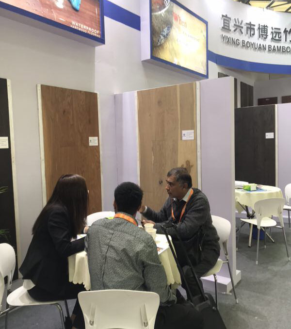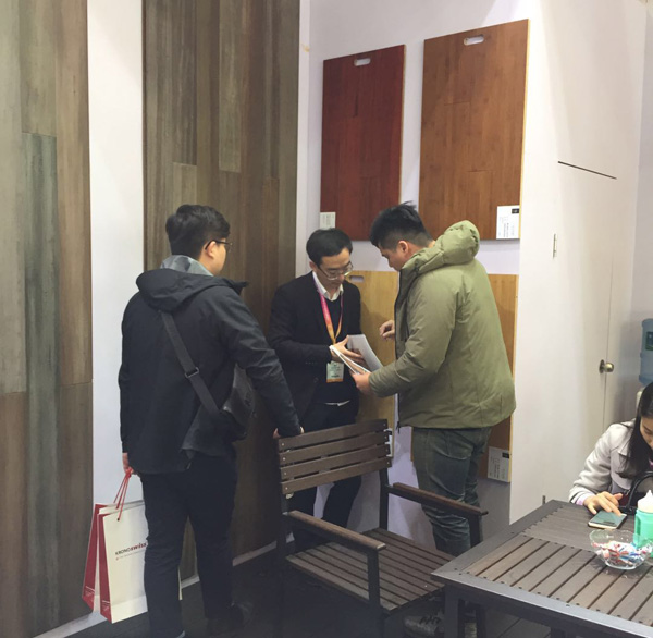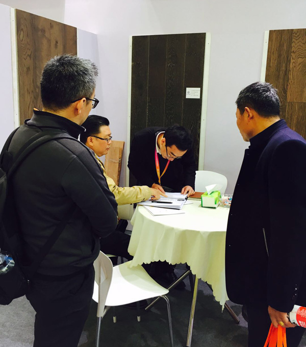 尚诺竹地板展位客商签约洽谈现场